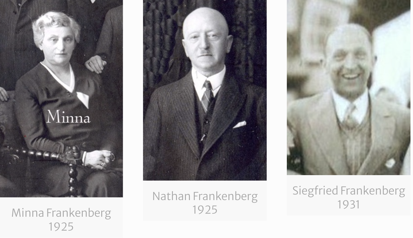 Minna und Nathan Frankenberg lebten in Coburg, wo auch die beiden Söhne Siegfried (*4.11.1895) und Walter (*20.10.1897) geboren wurden. Sie waren ein äußerlich ungleiches Paar, Minna war etwa einen Kopf größer als Nathan, doch sie liebten sich sehr.