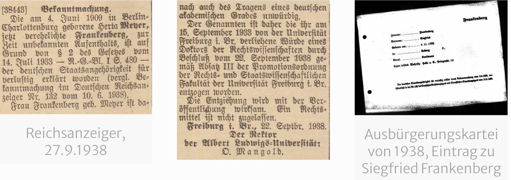 1938 entzog das Deutsche Reich beiden die Staatsbürgerschaft, woraufhin die Uni Freiburg Herta Frankenberg den Doktortitel aberkannte.