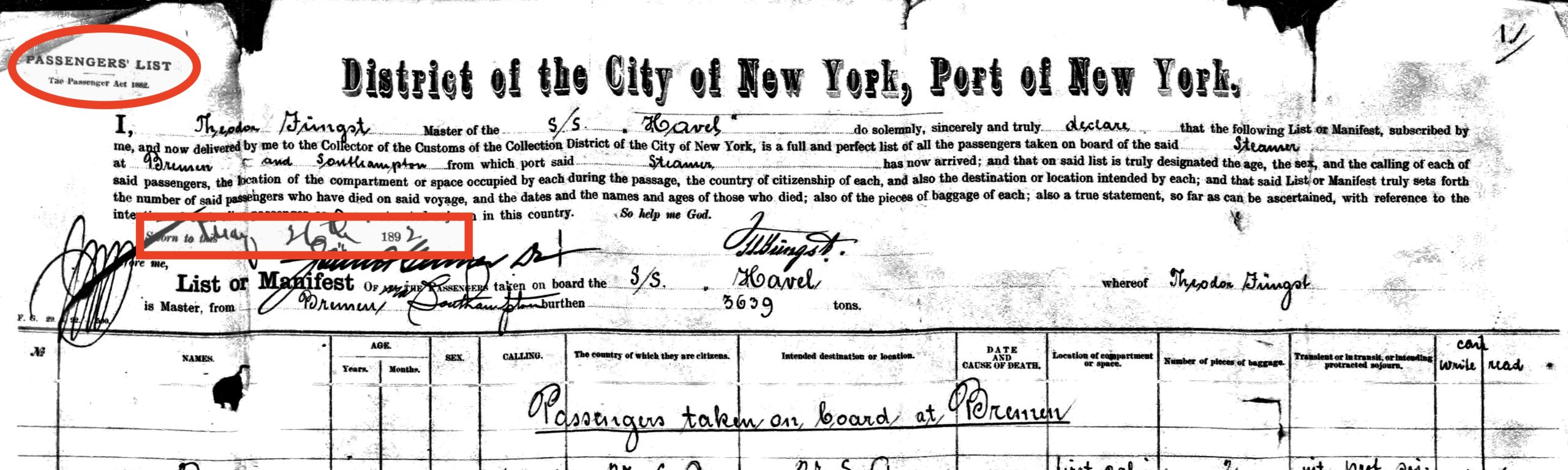 In May 1892, family members said ‘goodbye’ to their families and left Germany. It was probably the last time Fredericka saw her parents. Nathan died in 1894 and Jette two years later. On 26 May 1892, Ricka and four children sailed from Bremen via Southampton/England to the port of New York.